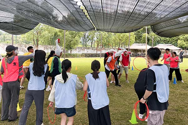 上午,團建活動在輕松愉悅的氛圍中拉開帷幕。現場設置了多線拔河套圈、套大鵝、大腳接力等豐富多彩的趣味項目。多向拔河,各隊隊員齊心協力、奮勇拼搏,口號聲、加油聲此起彼伏,充分展現了團隊的凝聚力和戰斗力;套“大鵝”,大家全神貫注,瞄準目標,每一次成功套中都引來陣陣歡呼;大腳接力則考驗著隊員之間的默契與協作,大家你追我趕,現場氣氛熱烈非凡。這些活動不僅讓同事們在緊張的工作之余得到了放松,更增進了彼此之間的了解與信任,為今后的工作協作奠定了良好的基礎。